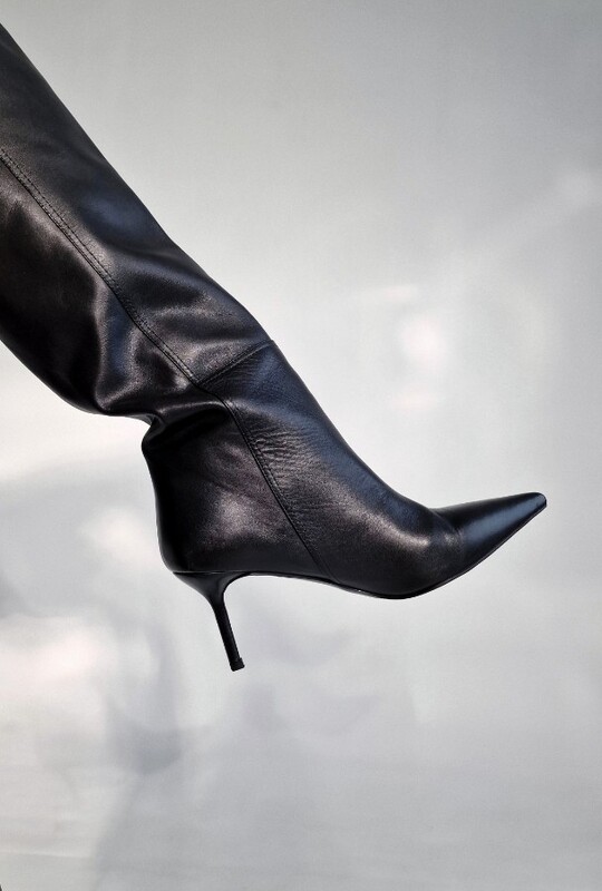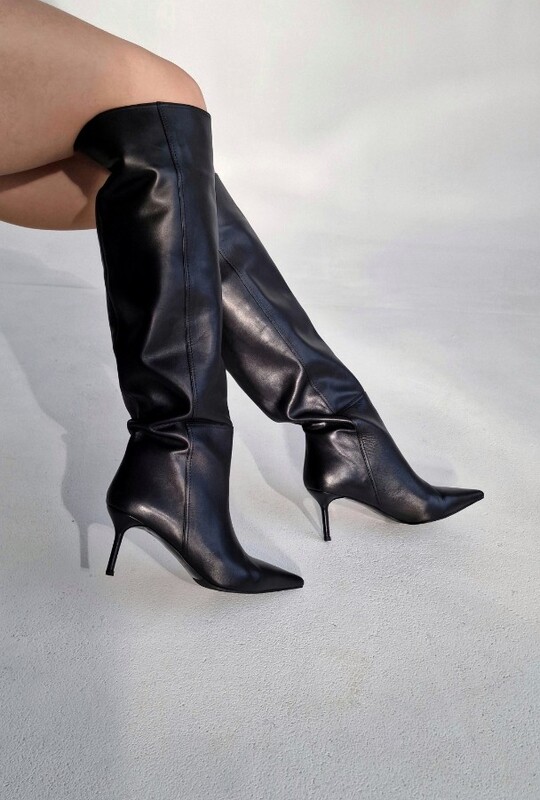 BLACK GENUINE LEATHER BOOTS WITH A 7 CM HEEL