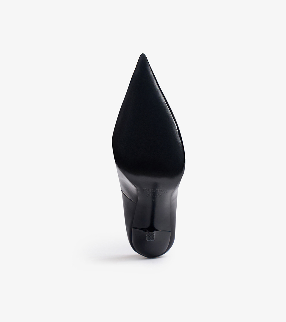 Forever Queen offers a black patent leather model with a contrasting insole.