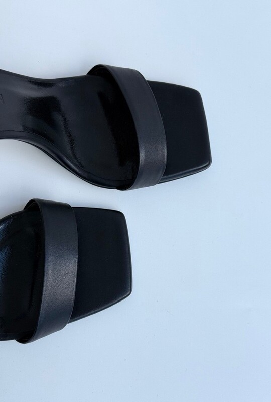 SANDALS MADE OF GENUINE BLACK LEATHER WITH A SQUARE TOE